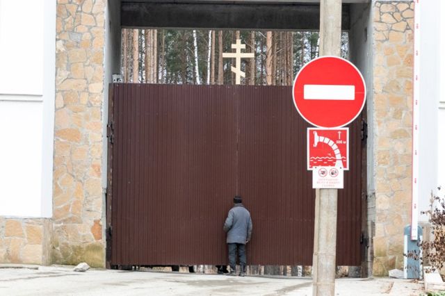 После беседы с охраной монастыря и предоставления документов ревизоров пустили за шлагбаум, представителей СМИ охрана отказывалась пускать даже на территорию перед монастырем, однако силы не применяла.