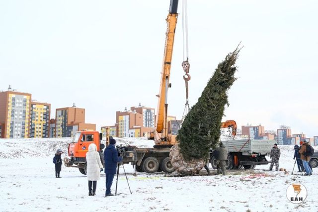 Екатеринбургский Академический район готовится к Новому году — в Преображенском парке высадили пышную 10-метровую сибирскую ель. Лесной красавице около 50 лет, она привезена из питомника Пермского края и стала чудесным подарком жителям района к предстоящему празднику.
