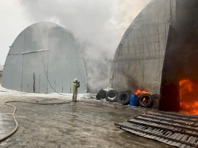 В ведомстве отметили, что процесс тушения пожара осложнялся двумя факторами: наличие в ангаре горючих веществ и слишком большое расстояние до ближайшего гидранта (2 км).