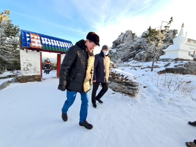 Вице-губернатор Свердловской области Сергей Бидонько вместе с представителями компании «Евраз» поднялся сегодня на качканарскую гору к буддистскому храму и встретился с его настоятелем Михаилом Санниковым.