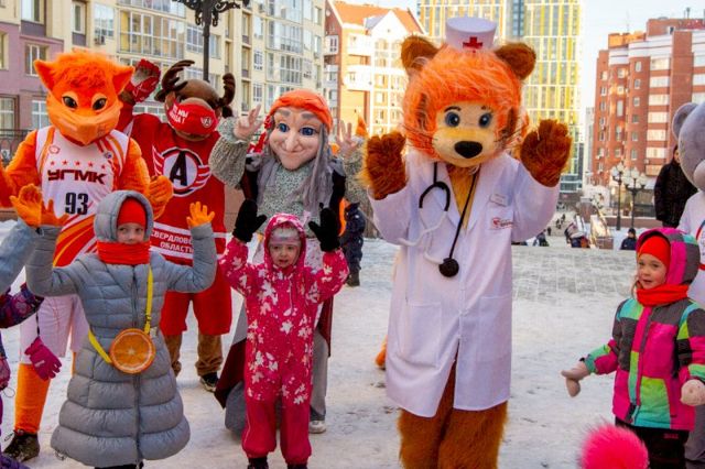 Так, вместе с детьми на улице играли самые известные ростовые куклы Екатеринбурга: символ ХК «Автомобилист» лось Автик, лис Майк от баскетбольного клуба УГМК, рысь Рысик — представитель клуба настольного тенниса УГМК, Мегадеша — символ стоматологической клиники «Мегадента», кот Филармоник из детской филармонии, самая известная Баба-яга Урала — Галамартовна, а также Кенгуру, Полосатый Кот из одноименной детской изостудии, профессор Гуня из Гуманитарного университета. А всех гостей праздника накормил вкусными булочками «Смак». Кроме того, все, кто пришел на прием в этот день, получили в подарок от поликлиники — гематоген и воздушные шары.