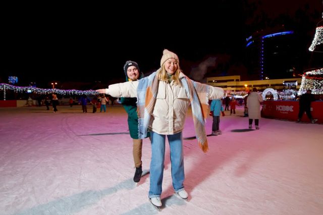 Отметим, что в этом году зона проката была увеличена в два раза, для того чтобы не было очередей, а сам каток его создатели оформили по-новогоднему ярко.