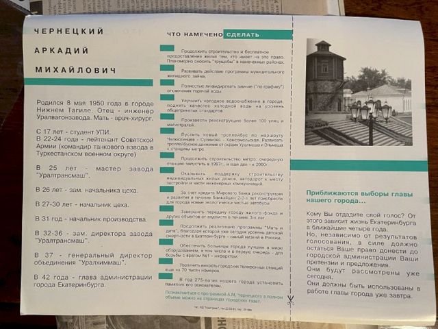 Семнадцатого декабря 1995 года Екатеринбург впервые выбирал главу города. В бюллетене было 4 предложения: