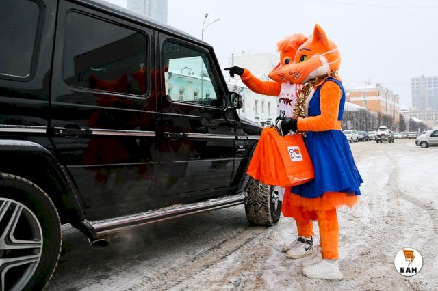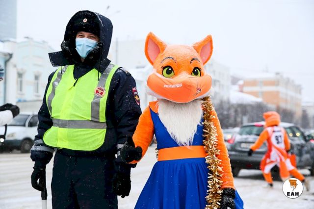 Талисманы баскетбольного клуба УГМК — Лис Майк и Лиса Маша провели праздничный рейд по дорогам Екатеринбурга в сопровождении экипажа ДПС.