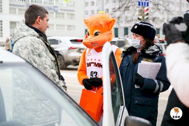 Как сообщает отделение пропаганды свердловского УГИБДД, талисманы клуба вместе с автоинспекторами поздравляли горожан и гостей Екатеринбурга с наступающим Новым годом, вручив жителям полезные сувениры. Рейд также имел профилактические цели. В частности, автомобилисты получили последнюю редакцию правил дорожного движения. С пешеходами проводилась беседа о безопасности на дорогах.