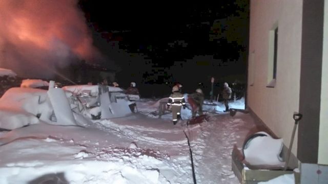 Сильный мороз осложняет тушение пожара – перемерзают пожарные рукава из-за отсутствия воды в гидрантах. Увеличению пожара способствует сильный ветер. На месте работает 13 единиц техники и 45 человек личного состава МЧС.