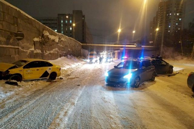 В Екатеринбурге вечером 16 января водитель автомобиля Volkswagen Polo с символикой «Яндекс Такси» устроил массовое ДТП по улице Серафимы Дерябиной, 24.