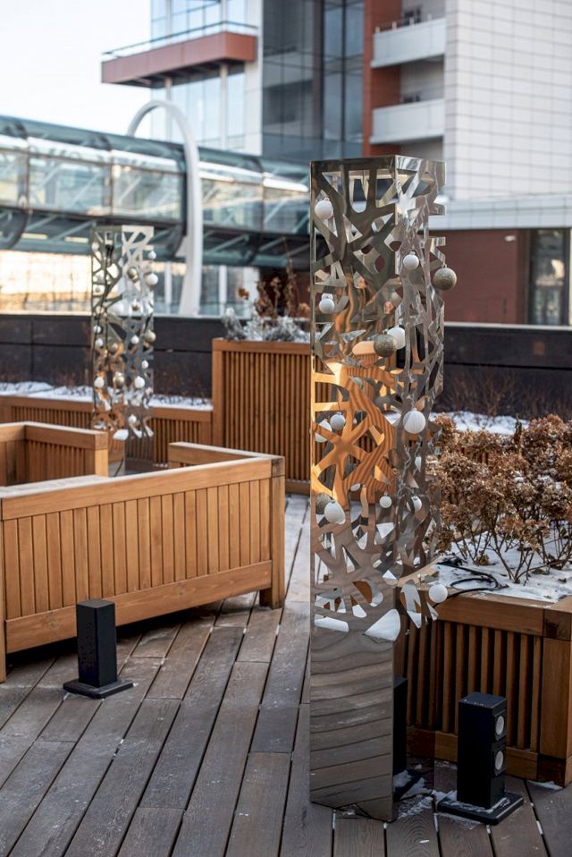 Фасады и деревья ЖК «Макаровский» в этом году украсили дизайнерской подсветкой, а во дворе и на эстакаде установили роскошно наряженные пушистые ели. Тополя со стороны ул. Н. Никонова, украшенные гирляндами, уже стали настоящим арт-объектом благодаря своей необычной форме. Стройку ЖК «Нагорный» украсили огромными динамичными цифрами 2021 и гирляндами, территорию центра продаж – световыми дождями, деревья на придомовой территории первого дома ЖК «Нагорный» – гирляндами, а во дворе установили красивую фирменную ель для первых резидентов комплекса. Центральный вход делового дома «Демидов» традиционно украшен множеством световых гирлянд теплого свечения, а клумба при входе – большим новогодним шаром.