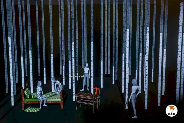 «Березовая роща – метафоричное пространство, такое очевидное и вечное. Мне кажется, оно идеально отражает эту идею сосуществования времен. Возраст жизни березы – 250 лет. Вы представляете себе, что молодая березка Пушкинско-Онегинского времени, она сейчас может быть старушкой, то есть мы сейчас можем потрогать ее рукой. Вот в этом смысле временная вилка – то, что мне хочется показать в декорации», - отметила Петрухина.