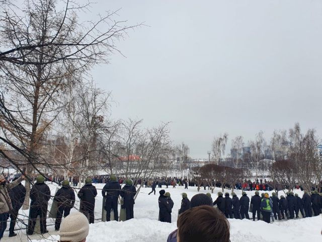 К театру Драмы стянули бойцов ОМОНа, которые начали окружать протестующих со щитами. После этого сторонники блогера и оппозиционера Алексея Навального решили сменить место и направились к «Динамо».