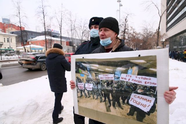 Ранее сообщалось, что полиция задержала первого участника акции, екатеринбуржца Игоря, который стоял с плакатом «Пора провести обыск в голове у президента». Также был задержан популярный в городе «дед-пикет».