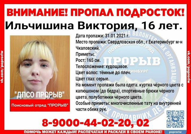 В Екатеринбурге 31 января – в день несанкционированного шествия в поддержку оппозиционера Алексея Навального, пропала 16-летняя Виктория Ильчишина.