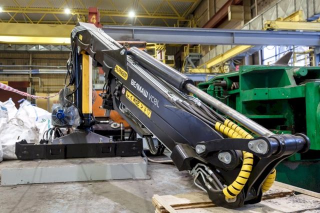 На смену устаревшим агрегатам пришли три современные стационарные манипуляторные установки с удобным управлением. Производительность каждой из них составляет 0,2 кубометр за один захват. Прессовщик, находясь в кабине манипулятора, может одновременно вести погрузку ломов и управлять прессом дистанционно. С помощью двух джойстиков и педалей он захватывает лом и опускает его в загрузочную камеру пресса. Далее работник нажимает на пульте кнопку «пуск», и пресс начнет выпускать брикеты, как на фабричном конвейере.