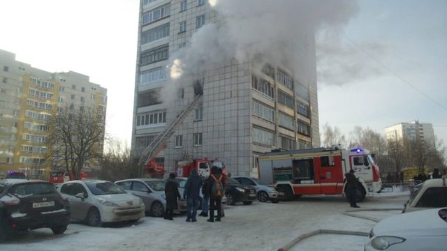В Екатеринбурге пожарные борются с огнем в 12-этажном доме на улице Ангарской, 52/2.