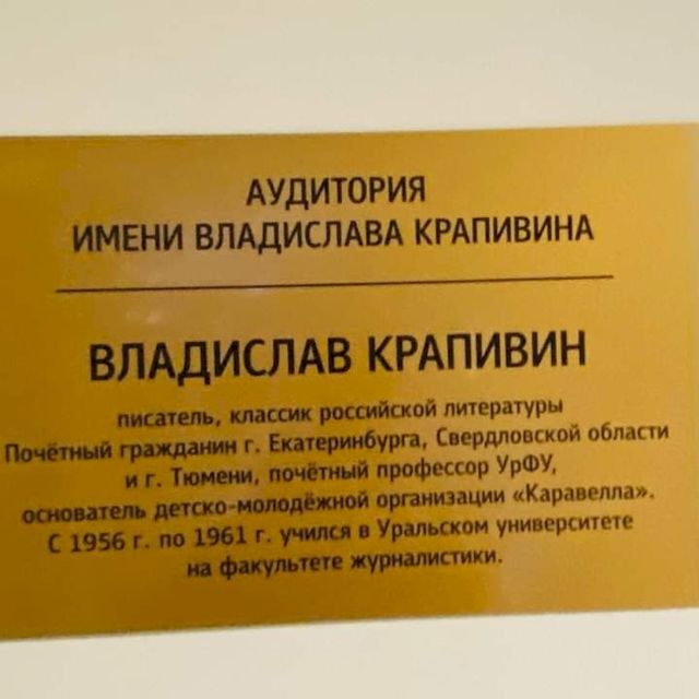 В честь известного детского писателя Владислава Крапивина названа аудитория на факультете журналистики УрФУ. Соответствующая табличка уже висит на одной из дверей факультета.
