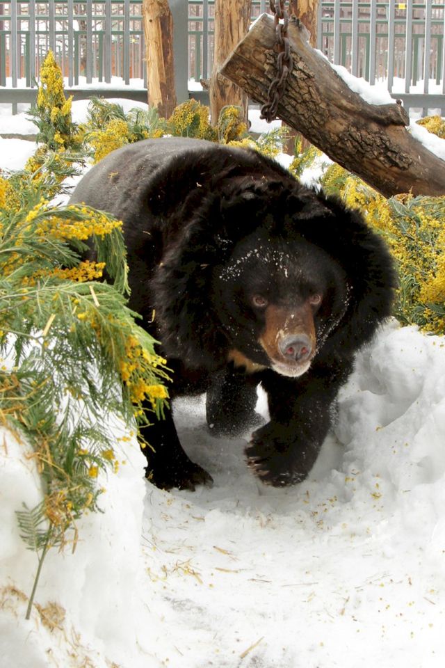 В екатеринбургском зоопарке проснулись медведи. Первым, как и несколько лет подряд, вышел из берлоги гималайский медведь Гай. В этом году сотрудники подготовили для косолапых настоящий сюрприз – все их вольеры украшены аллеями из мимоз. Желтые цветы пришлись Гаю по вкусу – он с удовольствием их обнюхал, а некоторые особо ароматные веточки даже пожевал, сообщает пресс-служба учреждения.