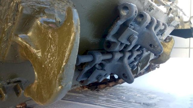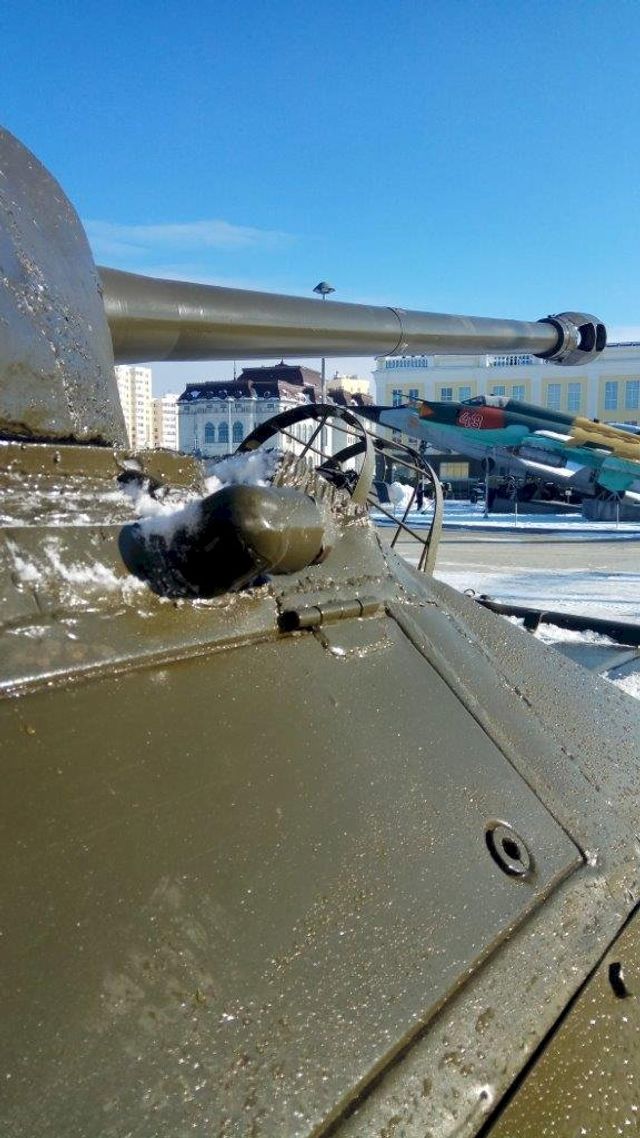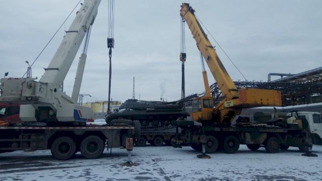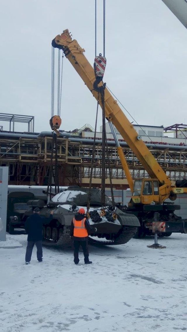 Его доставили на автомобильной платформе. Боевая машина может передвигаться своим ходом, но ее решили поберечь: возраст танка больше 70 лет, и эксплуатировать его без вреда для оригинальных узлов и механизмов можно только при постоянной плюсовой температуре, которая ожидается только в апреле. С трала танк спустили при помощи двух мощных кранов общей грузоподъемностью в 130 тонн.