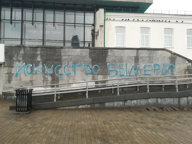 «Такие надписи музей убирает своими силами. С Екатеринбургским музеем ИЗО подобное происходит не впервые, к сожалению. Насколько нам известно, руководство в полицию заявления подавать не стало, камеры видеонаблюдения эти стены не охватывают.