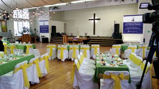 В итоге к 10 утра 7 апреля в зале Методистской церкви собралось порядка 50 человек. В основном пасторы протестантских церквей. В качестве официального гостя на молитвенный завтрак пришел полномочный представитель муфтия Равиля Гайнутдина в Уральском федеральном округе Артур Мухутдинов.