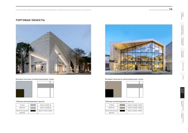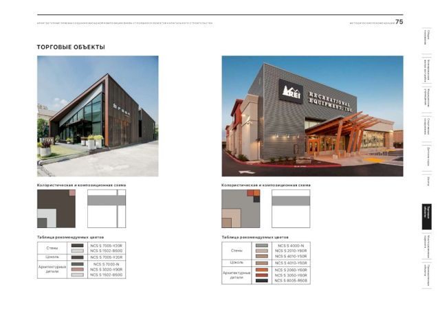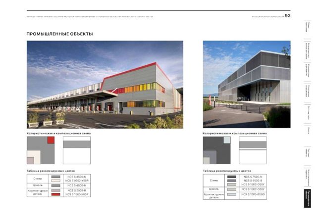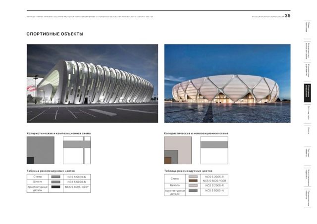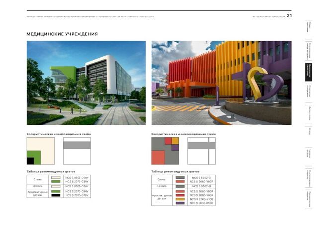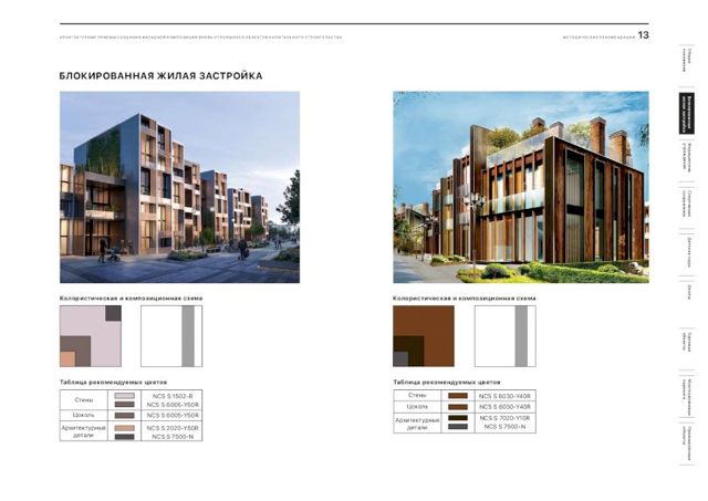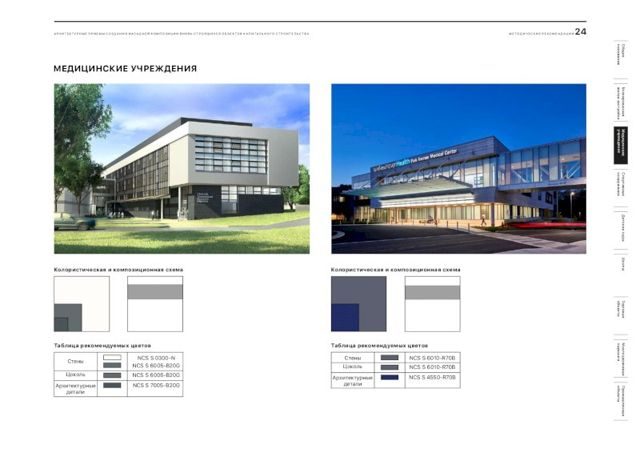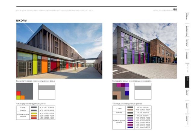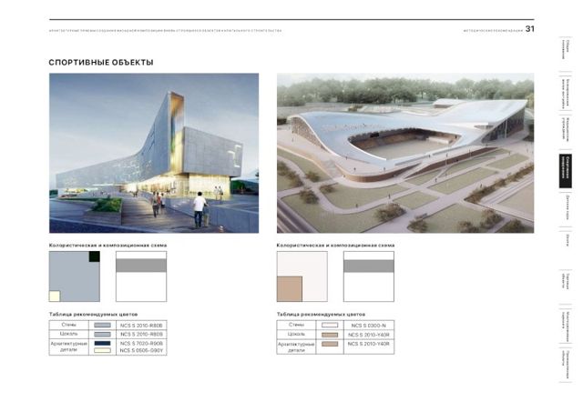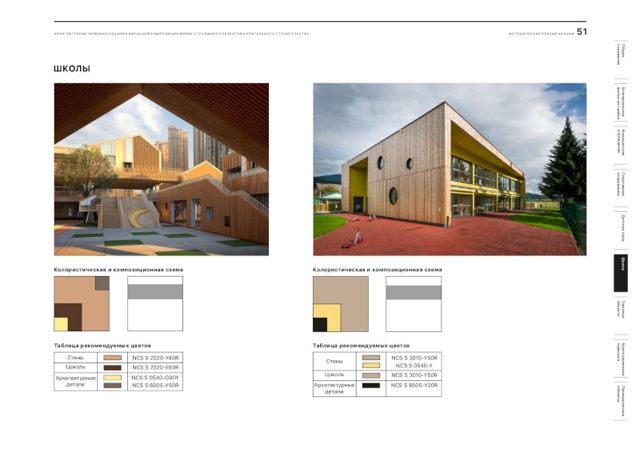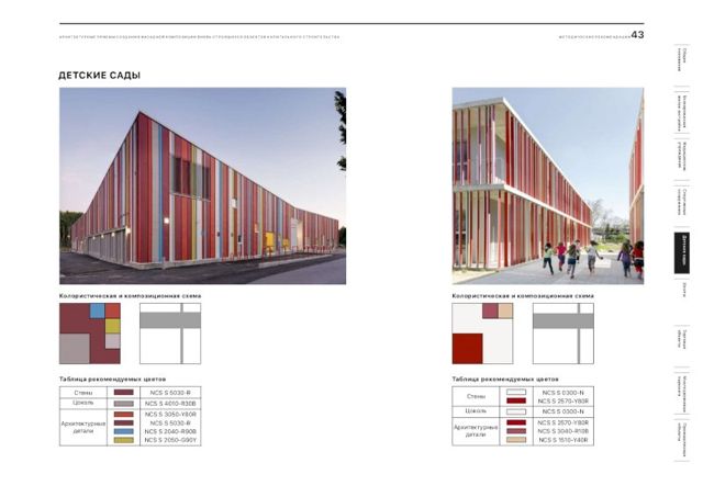 В документе подобраны рекомендации и цветовые решения для оформления внешнего облика новостроек, детских садов, школ, больниц, торговых центров и спортивных объектов. По словам главного архитектора города, при составлении методички были собраны самые удачные решения, примененные в России.