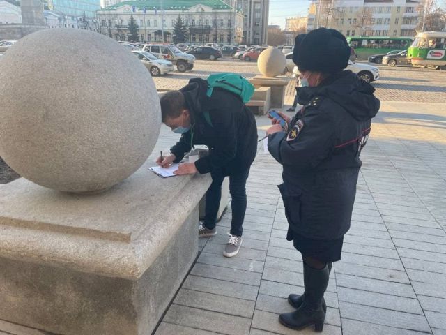 Во время пикета к участникам пыталась присоединиться девушка, но представитель министерства общественной безопасности области попросил отойти ее на 50 метров. Он пояснил, что акция заявлена на двух человек. Девушка в итоге встала с плакатом у остановки.