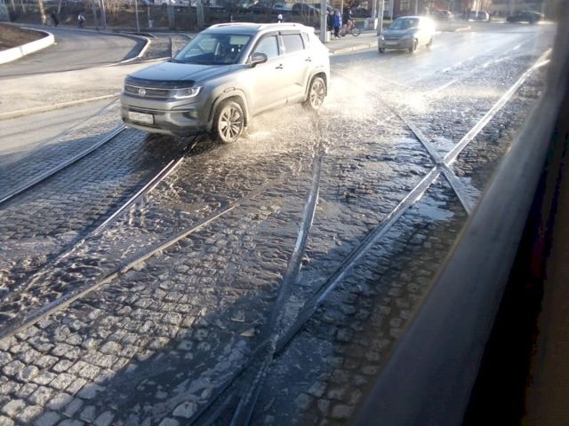 По словам очевидцев, вода идет со стороны Московской горки. Предположительно в центре города прорвало сети холодного водоснабжения.