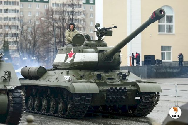 В самом параде примут участие раритетные танки, самоходки, тягачи и автомобили – в том числе Т-34, пятибашенный банк Т-35, созданная на Уралмаше самоходка-истребитель танков СУ-100. В этом году впервые в парадной колонне пройдут тяжелые танки ИС-3 и КВ-1, а также грузовик ЗИС-6 со звукоулавливающей установкой в кузове.