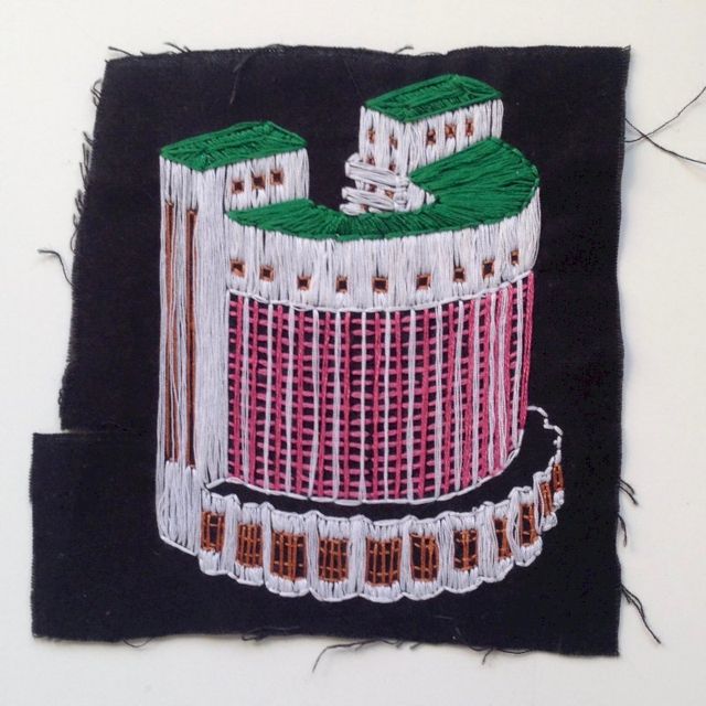 Известный петербургский художник и дизайнер Александр Браулов создал вышивку с изображением здания ПРОМЭКТа, снесенного в Екатеринбурге, сообщает проект «Территория авангарда».