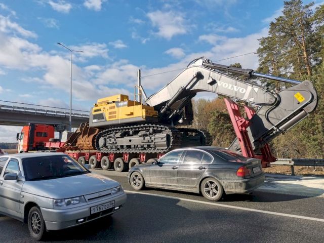 «Большегрузом управлял мужчина 1979 г.р., житель республики Казахстан, который пояснил сотрудникам полиции, что перевозил экскаватор из Березовского в Казахстан, при движении по ЕКАД ночью в направлении Кольцово он заметил путепровод, при проезде конструкции снизил скорость и медленно продолжил движение, задев мост, он сразу же остановился», – уточнили в УГИБДД