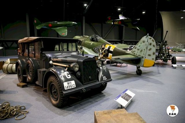 Композиция большого выставочного зала образована наиболее крупными самолетами коллекции. Рядом с советскими самолетами – «летающим танком» ИЛ-2, символом предвоенных ВВС, главным героем популярного фильма «Валерий Чкалов» истребителем И-16, лучшим пикирующим бомбардировщиком того времени ТУ-2 - стоят поставлявшиеся в Советский Союз по программе ленд-лиза бомбардировщики Douglas A-20 Boston, North American B-25J Mitchell, транспортный Douglas DC-3 и самый крупный самолет выставочного центра ––американская летающая лодка PBY «Catalina». Ее длина 19 метров, а размах крыла больше 31 метра.
