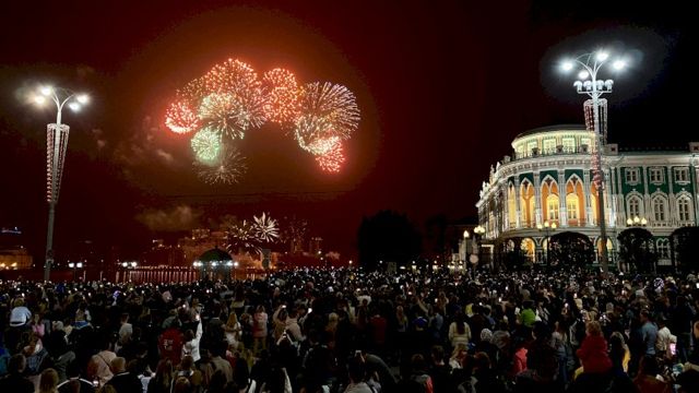 Фейерверк запускали с трех точек — акватории Городского пруда, летнего парка «Уралмаш» и из Преображенского парка. В районе Плотинки салют длился 15 минут.
