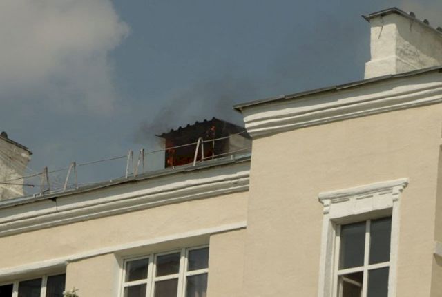 «Горит кровля открытым пламенем, сильное задымление на лестничных клетках. Идет эвакуация граждан, но в квартирах еще остаются люди, в том числе нетранспортабельные инвалиды», - сообщил ЕАН информированный источник.