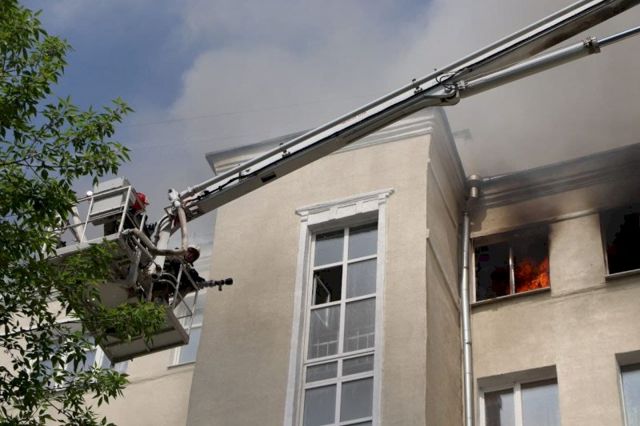 «Заело подъемный механизм, поэтому пожарные не могут добраться до выгорающей квартиры на последнем этаже. Пытаются тушить квартиру с уровня второго этажа, но напора не хватает, струя не достает до квартиры», - сообщил корреспондент ЕАН с места пожара.