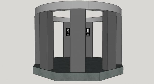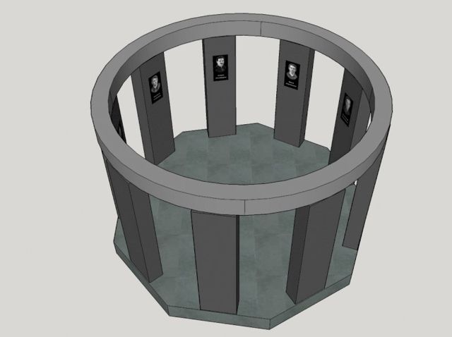 Он будет представлять из себя небольшую трехстороннюю «стеллу», на каждой из трех сторон будет находиться по три портрета участников группы Дятлова. Кроме стеллы, там же, в Вижае, Киреев планирует установить небольшую скульптурную композицию вроде беседке, внутри которой дятловцы будут как бы смотреть друг на друга.