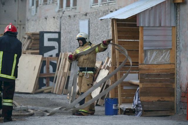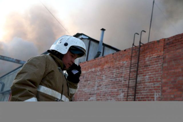Спасателям также сообщили, что на территории хранятся газовые баллоны. Существует угроза взрыва.