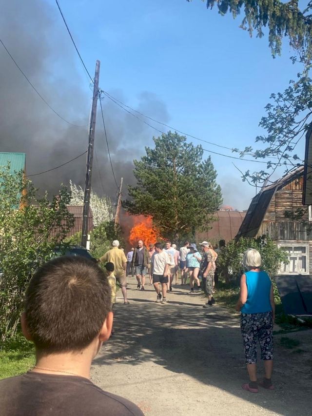 Быстрому распространению огня способствовали порывы ветра и плотная застройка. Создается угроза дальнейшего распространения огня. При этом местные жители сообщают, не могут ничего забрать из домов, к которым подбирается пламя.