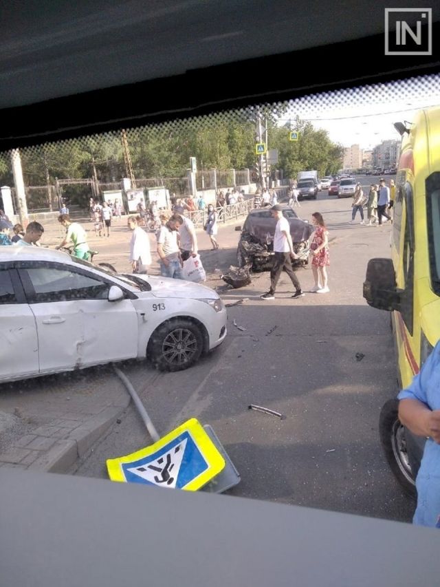 Как пояснили в отделении пропаганды городского ОГИБДД, автомобиль Mercedes Е 500, ехавший по улице Радищева, проехал на запрещающий сигнал светофора и врезался в Chevrolet Cruze. Эта машина ехала по улице 8 Марта в сторону Куйбышева. От удара Chevrolet отбросило на людей, которые стояли на тротуаре. В результате аварии пострадали три человека. Среди них два пассажира, находившиеся в Chevrolet, — полуторагодовалый ребенок и его 23-летняя мама. Травмы получила одна из пешеходов — беременная женщина.