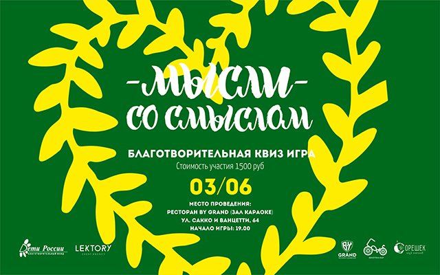 В Екатеринбурге 3 июня пройдет IV благотворительная интеллектуальная игра «Мысли со смыслом», направленная на помощь детям. Организуют мероприятие благотворительный фонд «Дети России», event-агентство Lektory и клуб знатоков «Орешек».