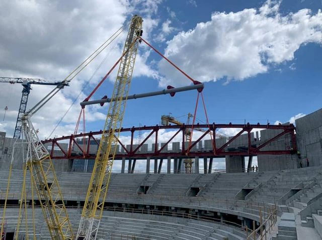 На строительной площадке Ледовой арены в Екатеринбурге подняли первую ферму покрытия (несущая конструкция сооружения). О знаковом событии на своей странице в Facebook рассказал начальник управления общественных связей УГМК Алексей Свалов.