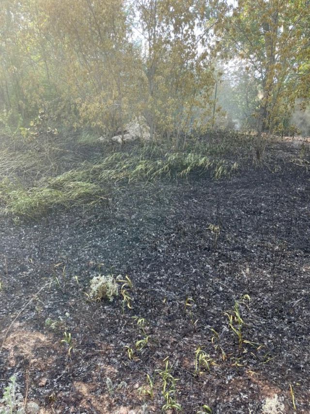 Корреспондент ЕАН уточняет, что пожар вышел за территорию парка. Ранее сообщалось, что площадь пожара составляла 20 кв. м.