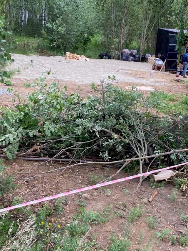 Вырубленные молодые деревья на участке, предназначенном для зоны отдыха