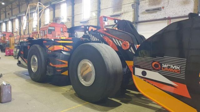 Как сообщает пресс-служба компании, один из центральных экспонатов стенда компании новинка 2020 года – погрузочно-доставочная машина ПДМ14 УГМК ФЕРРИТ (DNK14 UGMK FERRIT) с грузоподъемностью ковша 14 тонн. Она произведена Шадринским автоагрегатным заводом (предприятие машиностроительного комплекса УГМК) совместно с чешской компанией FERRIT.