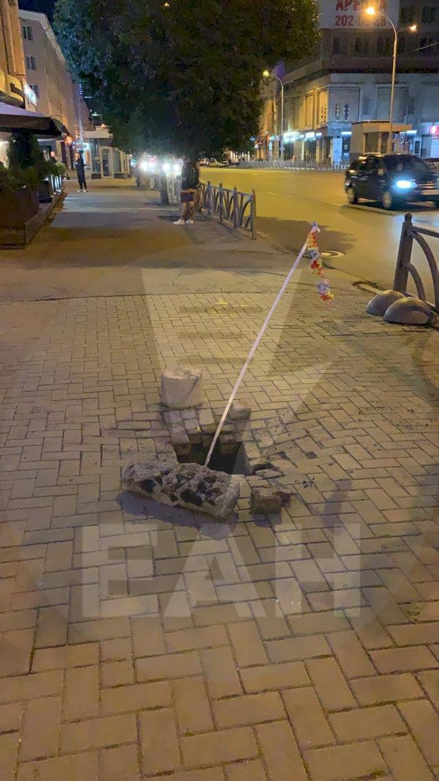 В Екатеринбурге напротив бара «Самоцвет» провалился тротуар.