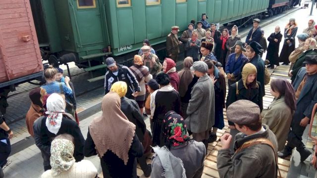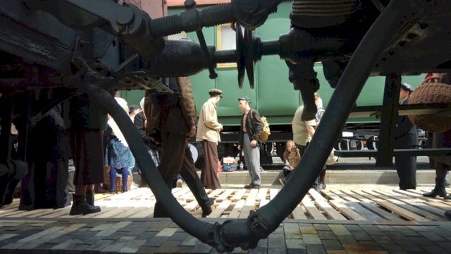 Фоном для сцены прощания на станции стали вагон-теплушка, паровоз и автомобиль ЗИС-5-«полуторка». На время съемок ходовой экспонат подогнали к платформе. На первом перроне организовали место отдыха для массовки, а под гримерную и реквизитную комнаты отдали вагон санитарного поезда. Ради кино даже пришлось отложить ремонт в этой экспозиции.