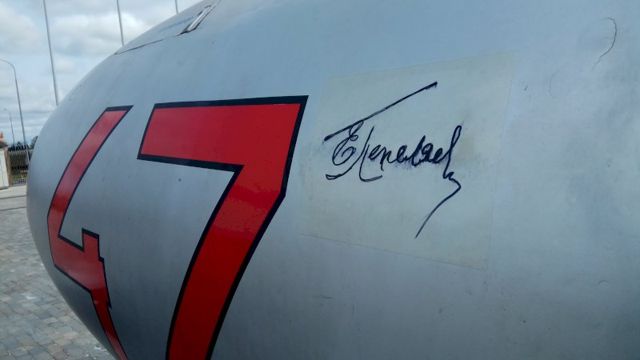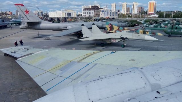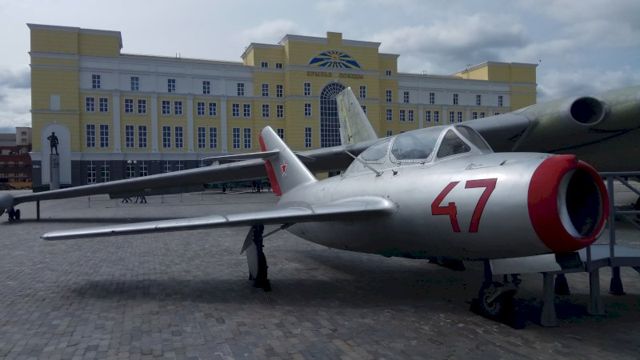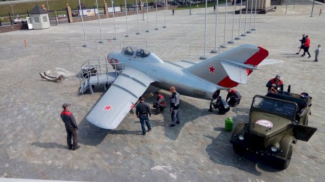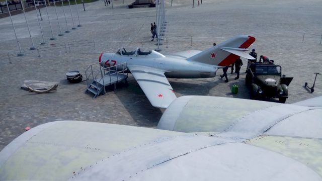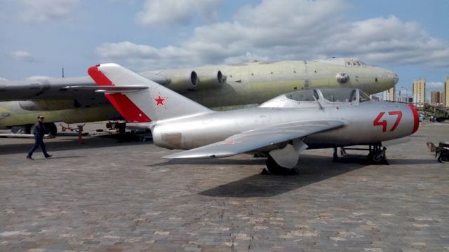 «Рядом с гигантским «Бизоном» разместили истребитель МиГ-15УТИ. Именно на таком самолете ушли в свой последний полет летчик-космонавт Юрий Гагарин и его инструктор Владимир Серегин. МИГ-15УТИ - это учебно-тренировочная версия МиГ-15. Советский самолет отличился в начале 50-х в Корее, одержав верх в противоборстве с американскими истребителями. На фюзеляже нового экспоната стоит автограф военного летчика Евгения Пепеляева. В небе над Кореей он сбил два десятка самолетов противника», - рассказали ЕАН в военном музей.