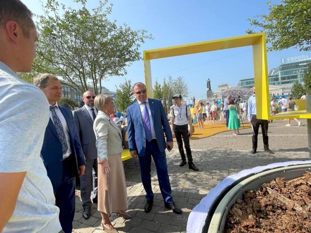 с 14 августа в День города на Площади 1905 года официально начался фестиваль ландшафтного искусства «Атмосфера». Вместо парковки там появился сквер с газонами, деревьями, цветниками, игровыми площадками и амфитеатром.