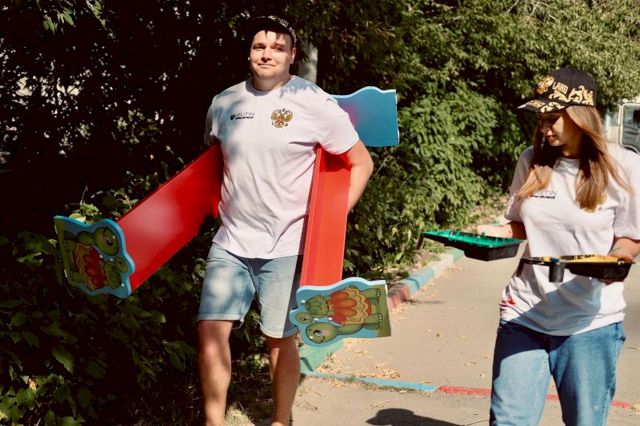 Добровольцы по традиции начали с уборки местности: скосили траву, собрали и вынесли мусор, ветки и шишки, расчистили тропинки. После этого установили новые лавочки и песочницы, покрасили игровые веранды, заборы и фасады самих зданий детсадов.