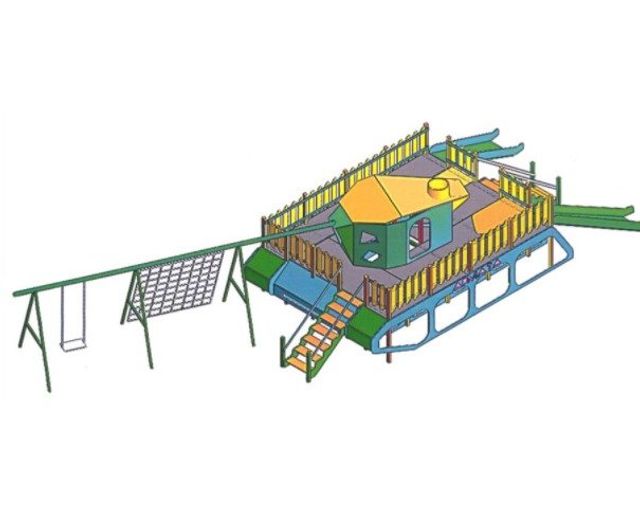Инженеры Уралвагонзавода разработали и запатентовали детскую площадку, основу которой составляет макет перспективного танка “Армата”. Документация на промышленный образец площадки в двух вариантах опубликована на ресурсах Роспатента.