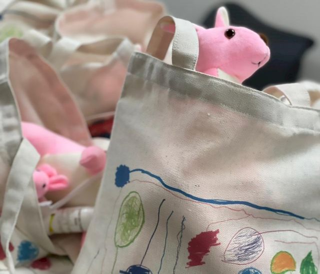 По окончании акции можно будет приобрести шоппер, сшитый руками ветерана войны с рисунками подопечных фонда, за 1 000 рублей.
