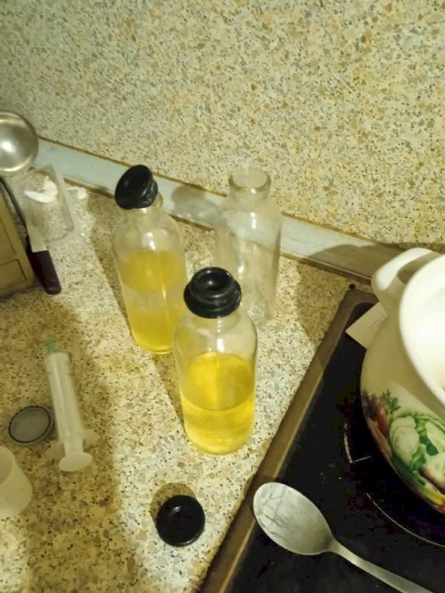 «Сотрудники задержали двух безработных и ранее судимых местных жителей 39 и 43 лет по подозрению в сбыте наркосинтетики. При осмотре в жилище одного из подозреваемых на улице Технической оперативники ОНК нашли три свертка и шприц с неизвестным веществом. Кроме того, полицейские обнаружили две емкости с содержимым неизвестного происхождения. Впоследствии экспертиза установила, что в изъятых свертках и шприце находился синтетический наркотик мефедрон массой 9,66 г, а в емкостях – синтетический опиоид метилфенил. Общий вес изъятого превысил 235 г», - сообщили ЕАН в пресс-группе УМВД по Екатеринбургу.